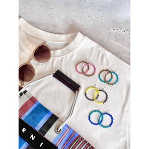 ・Maruのピアス金具は、意図的に丸カンを挟まずに直接糸に取り付けております。金具を強く引っ張ると糸がほつれる可能性がありますのでご注意ください。